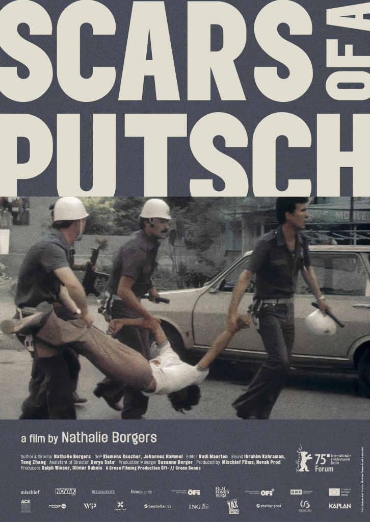 Der Militärputsch vom 12. September 1980 beendete abrupt den Traum von einer Demokratie in der Türkei. Abidin, der Ehemann der Regisseurin, Nathalie Borger, war in den 1970er Jahren ein türkischer Revolutionär und flüchtete zu dieser Zeit nach Wien in Österreich. Im Film Narben eines Putsches, begibt sich die Filmemacherin auf eine persönliche Suche, um herauszufinden, was sich hinter den Narben auf dem Körper ihres Mannes verbirgt, wie dieses gewalttätige Ereignis die türkische Gesellschaft veränderte und den Weg für ein autoritäres Regime und die politische Re-Islamisierung des Landes ebnete.